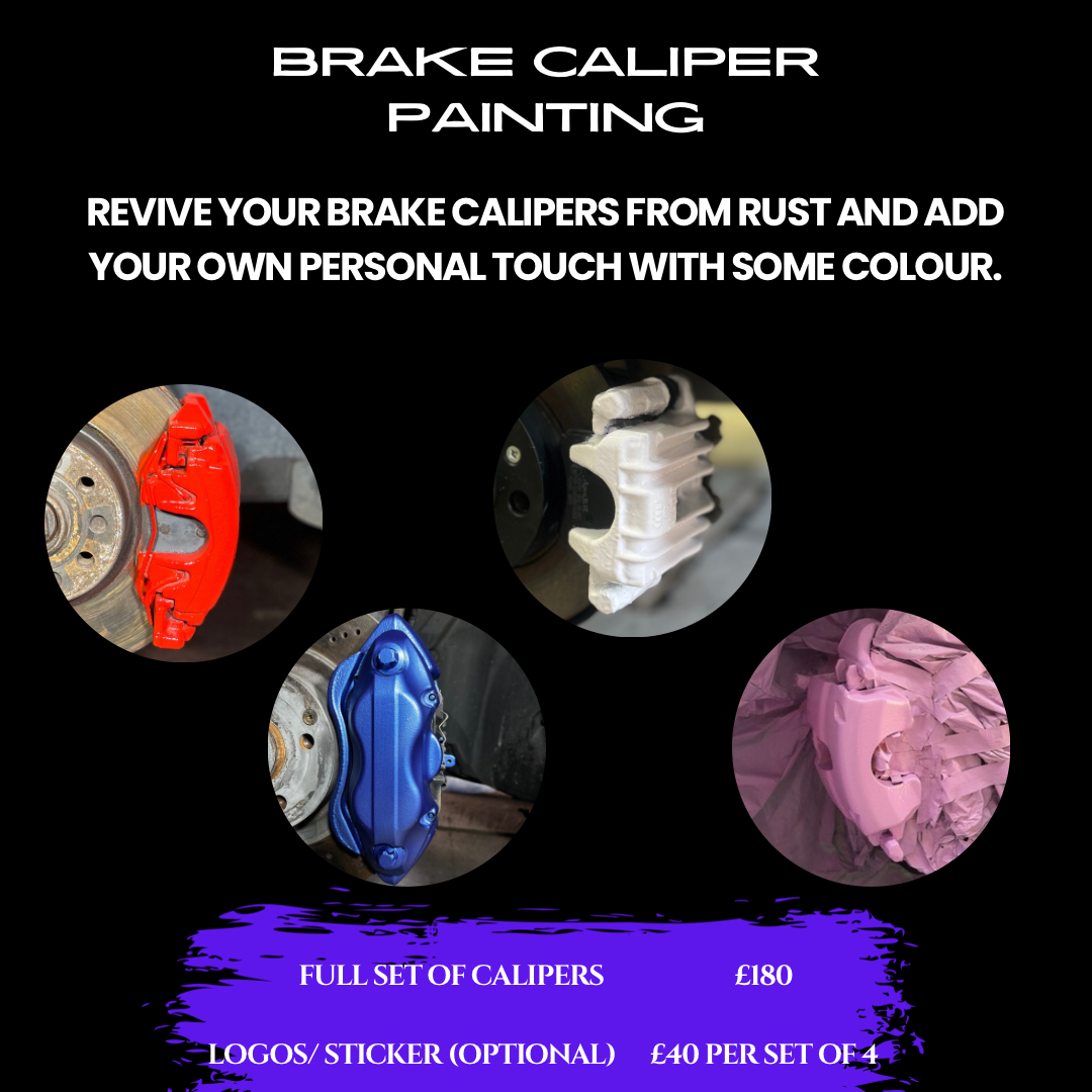 Fresh paint, clean look, and a touch of colour that makes your car stand out. Subtle or bold, make your calipers match your style. Stickers available upon request at an additional cost.
